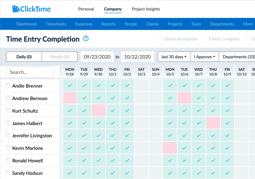 ClickTime provides features that help you promote healthy timesheet habits. Our software: