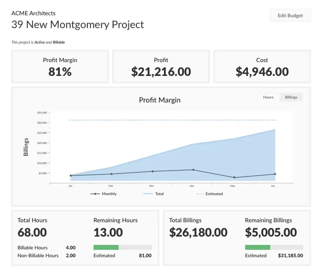 - Budget Tracking: View every project's budget burndown in real-time and catch overservicing quickly.