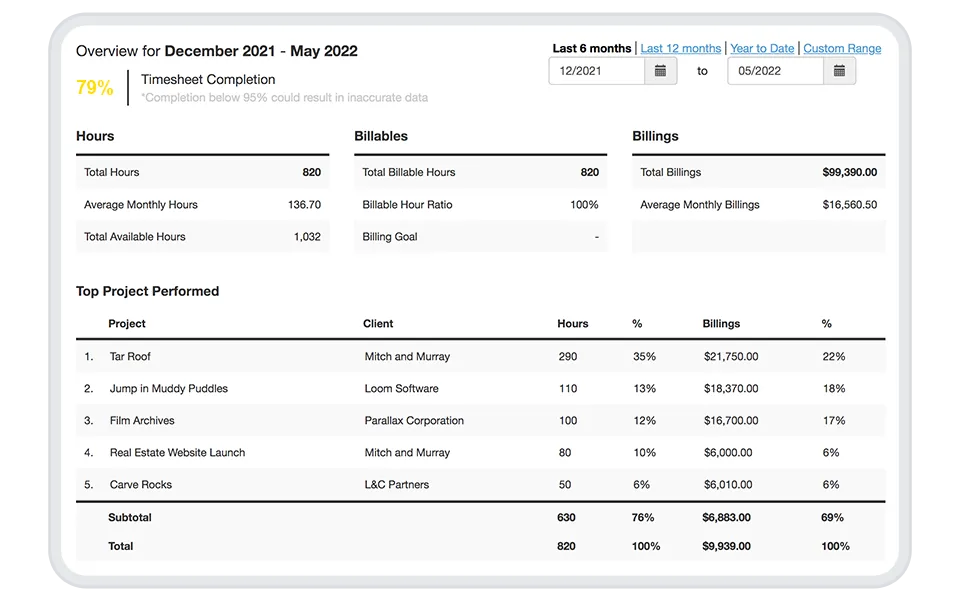 - Bill More Hours: Low utilization rates help you understand if your team is overstaffed, working on unassigned projects, or overservicing clients. These easy insights help managers reduce out-of-scope, non-billable hours and ensure that employees are making the best use of their available hours.